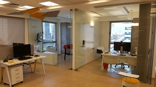 מחולק לאופן ספייס + 3 חדרים +חדר ישיבות, מטבח ומקלחת.